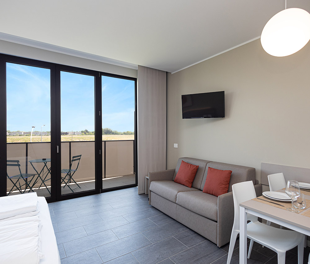- Balcone privato: Ogni monolocale ha un balcone per godervi un momento di relax all’aria aperta.